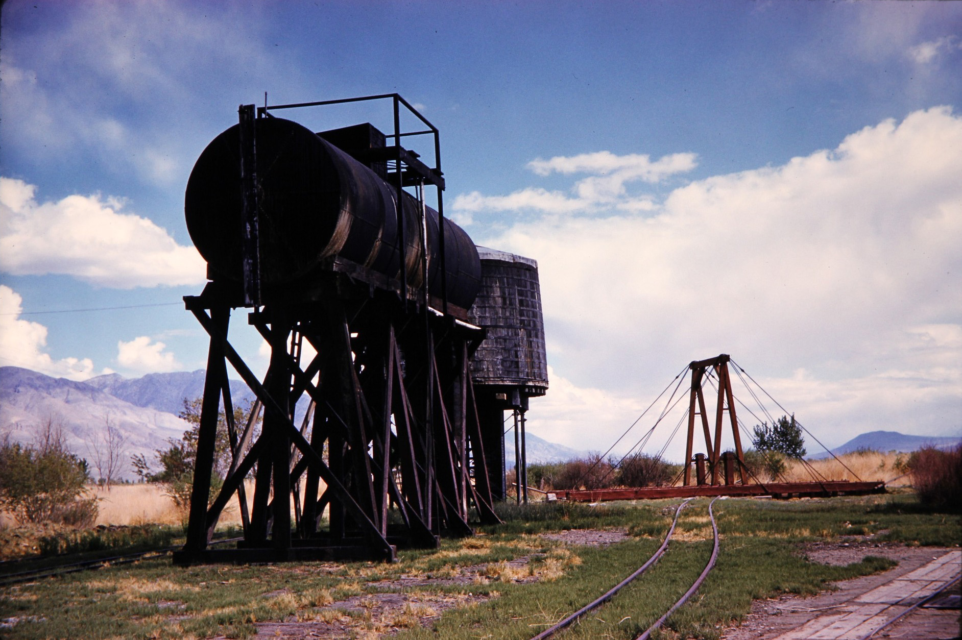 Gallows Turntable at Laws Station. Constructed in 1883 and served until the end of the Carson & Colorado Railroad operations. No. 18 being turned in 1952.
