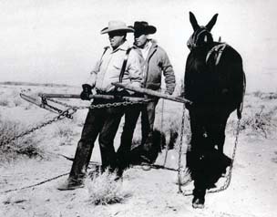 the 1950s) waiting to place the mules in their position in the