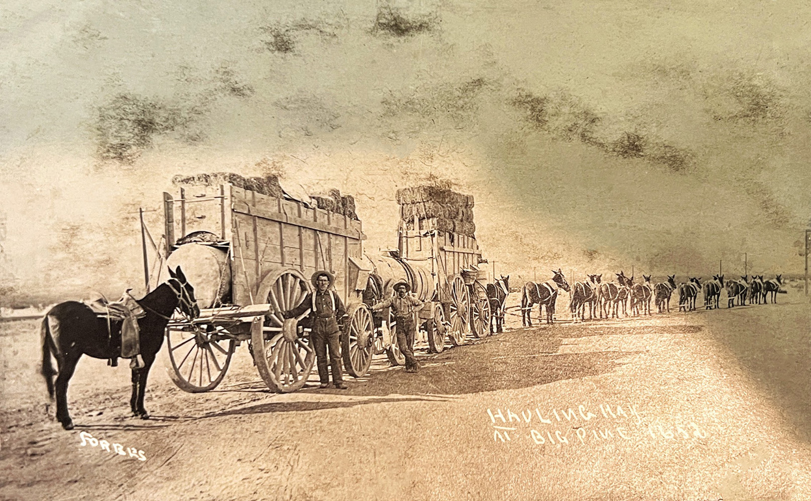 20-Mule Team hauling alfalfa hay in Big Pine