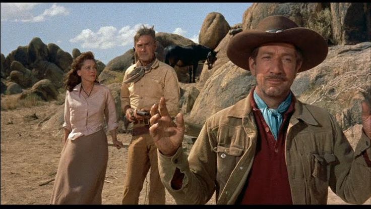 Randolph Scott, Richard Boone, and Maureen O'Sullivan in The Tall T - 1957