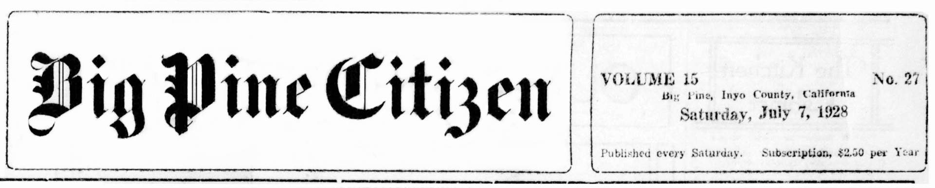From the "Big Pine Citizen" of Big Pine, CA of July 7, 1928