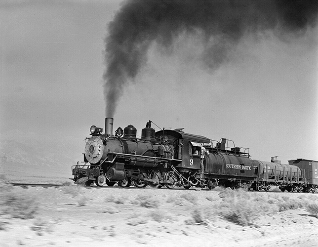 Constructed over four decades, the N-C-O ultimately had 275 miles of track with a three-foot gauge main line extending north from Reno through northeast California and on into central Oregon. Passenger service, cattle, sheep, lumber, petroleum products, woool, grain and hay were the line's primary business. Perennially financially challenged, the N-C-O sold 103 miles of trackage to the Western Pacific in 1917 and Southern Pacific acquired control of the remaining N-C-O property in October 1926. When SP began standard-gauging the line within a year, the handwriting was on the wall for the N-C-O's remaining diminutive 4-6-0s. Effective May 11, 1928, N-C-O #12 was sold for operation between Mina and Keeler, where the SP still utilized narrow gauge equipment.