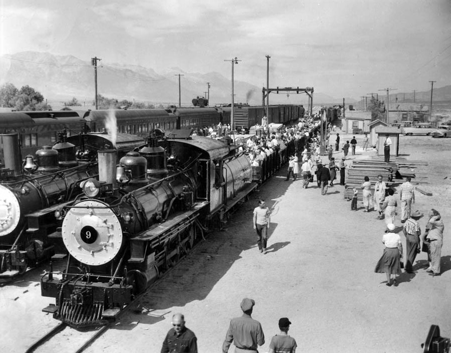 SP2758 at Owenyo, CA - 1946. By design or chance, the photographer accomplished two unusual things in this shot: