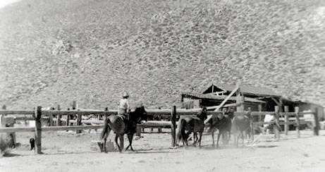 Sam Lewis herding horses at the Pack Station at Haiwee Canyon |