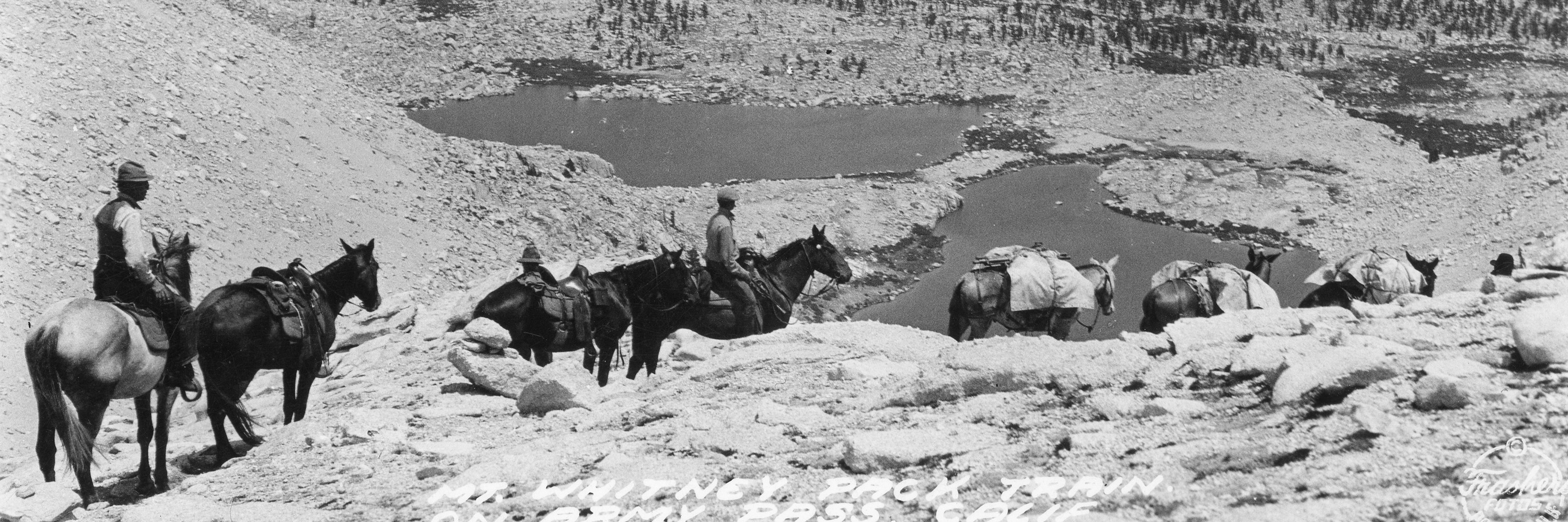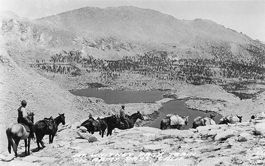 mules on the switchbacks headed towards Trail Crest Pass at 13,777