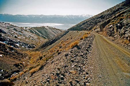 View from the Yellow Grade Road into Cerro Gordo looking west towards the Sierra Nevada Mountains |