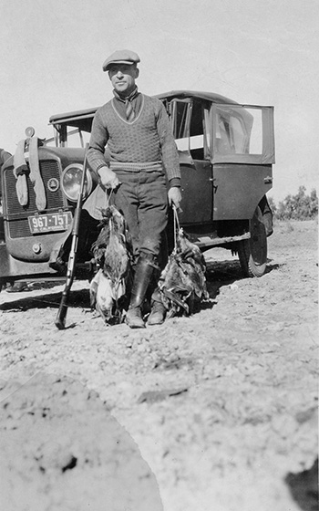 Tom, one of the pointers, and a lot of equipment on their way home after what looks like a successful hunt. The picture was taken just off of the current Benton Crossing Road, the fence is still there. |
