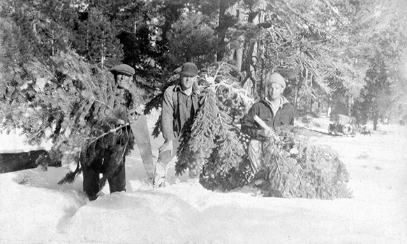 L/R: Bob Brown, Marvin Hill, ? - Harvesting Christmas trees |