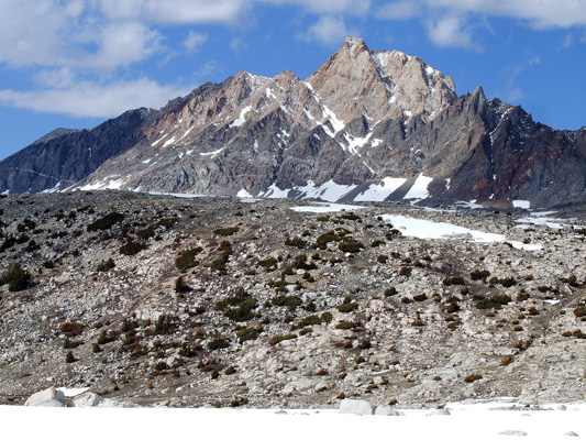(Right: Guitar Lake with the Kaweah's in the background) |