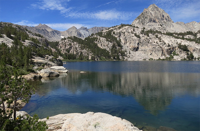 Originally named "Gem-o'-the-Mountains" by Theodore C. Agnew, an early miner. The USGS shortened the name, and also applied it to the pass, during the 1898-99 survey for the Mt. Lyell map. The lake has been dammed, and is a reservoir for Southern California Edison.