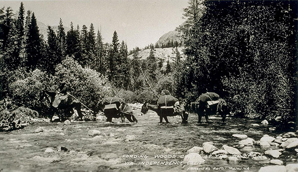 Frontier Pack Train on Upper Rush Creek, Mono County, CA - 1936